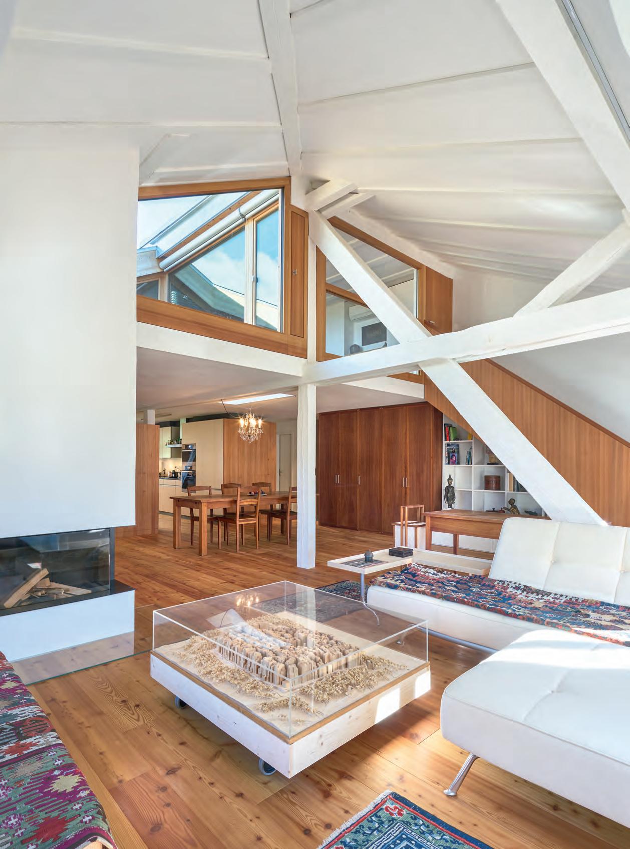 Die Hauptaufgabe eines Daches scheint eigentlich klar: Es schliesst ein Gebäu de nach oben ab und schützt es vor Witterungseinflüssen. Dem Raum unter dem Dach wurde lange Zeit keine oder zumindest zu wenig Beachtung geschenkt. «Als feuchtigkeits- und temperaturregelnder Pufferraum diente der Dachboden bis ins 20. Jahrhundert vor allem als Lagerfläche oder zum Trocknen der Wäsche», beschreibt ihn die Architektin und Autorin Ulrike Wietzorrek im Interview (ab Seite 38). Nach und nach wurden die Chancen er kannt, die dieser Raum bietet – nicht zuletzt auch dank der Fortschritte in der Bautechnik. Der Raum unter dem Dach spielt heute im Zuge des erhöhten Wohnraumbedarfs und des verdichteten Bauens eine sehr wichtige Rolle.