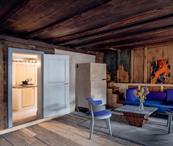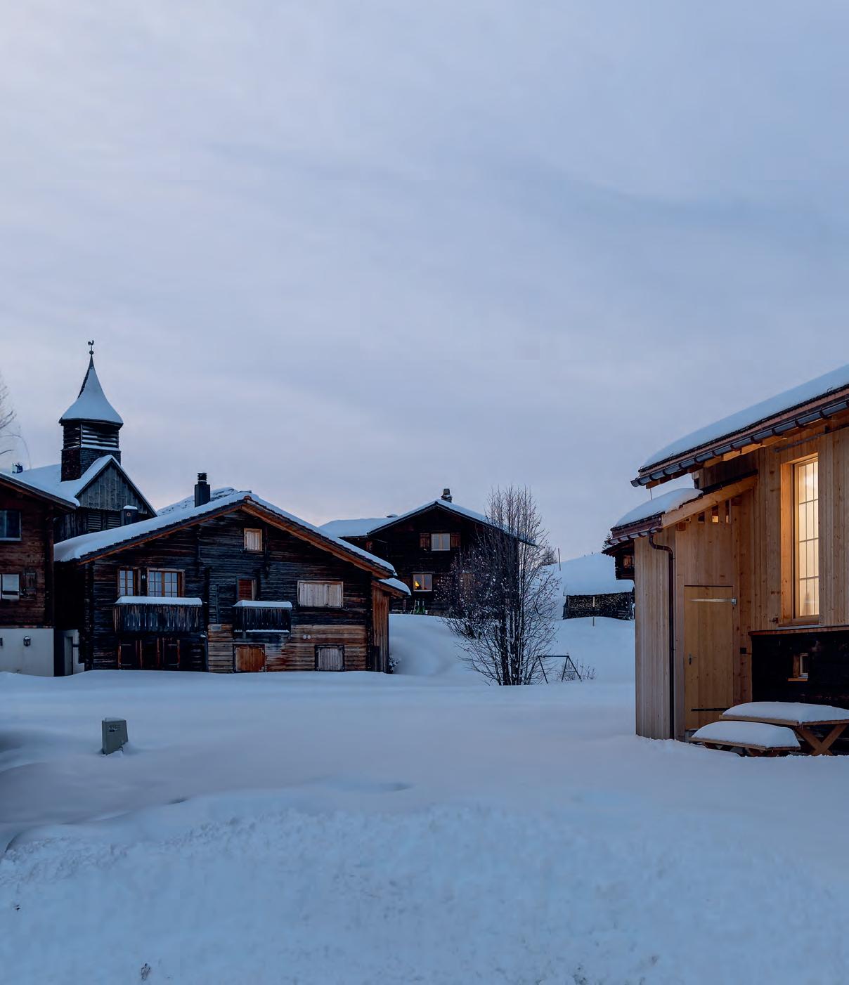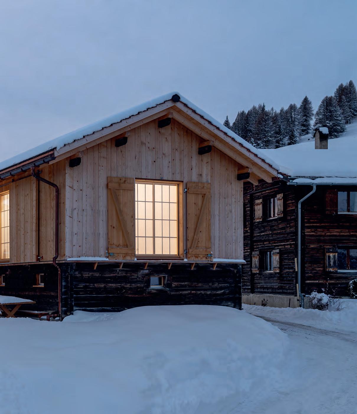 1 1846 m ü. M. Im Herzen der Walsersiedlung Obermutten entstand in einem ehemaligen Stall ein unkompliziertes Feriendomizil für eine sechsköpfige Familie.