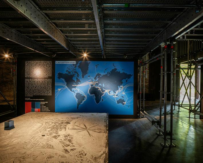 In the second Tesa, the Research Pier extends as a long terrace hosting videos, debates, and screenings curated by Istituto Luce Cinecittà; along the walls, photography by Luigi Filetici (Mare Mosso. Mediterranean Report) and Laura Canali’s geopolitical maps convey the complexity of the mare nostrum a sea of conflicts, strategies, and ever-shifting balances.