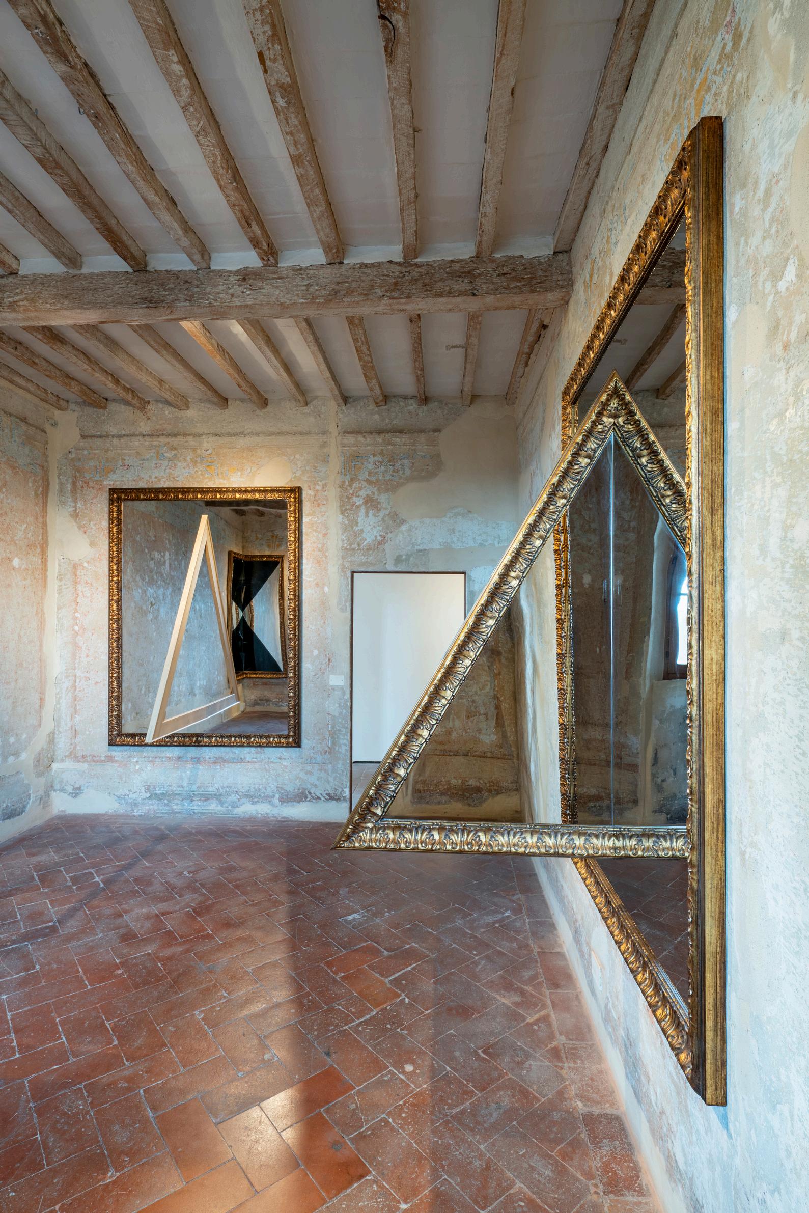 Michelangelo Pistoletto, Uno specchio rotto, 2025, mirror, wood, gilded frame, variable dimensions, Courtesy: the artist and GALLERIA CONTINUA, Photographer: Ela Bialkowska, OKNO Studio