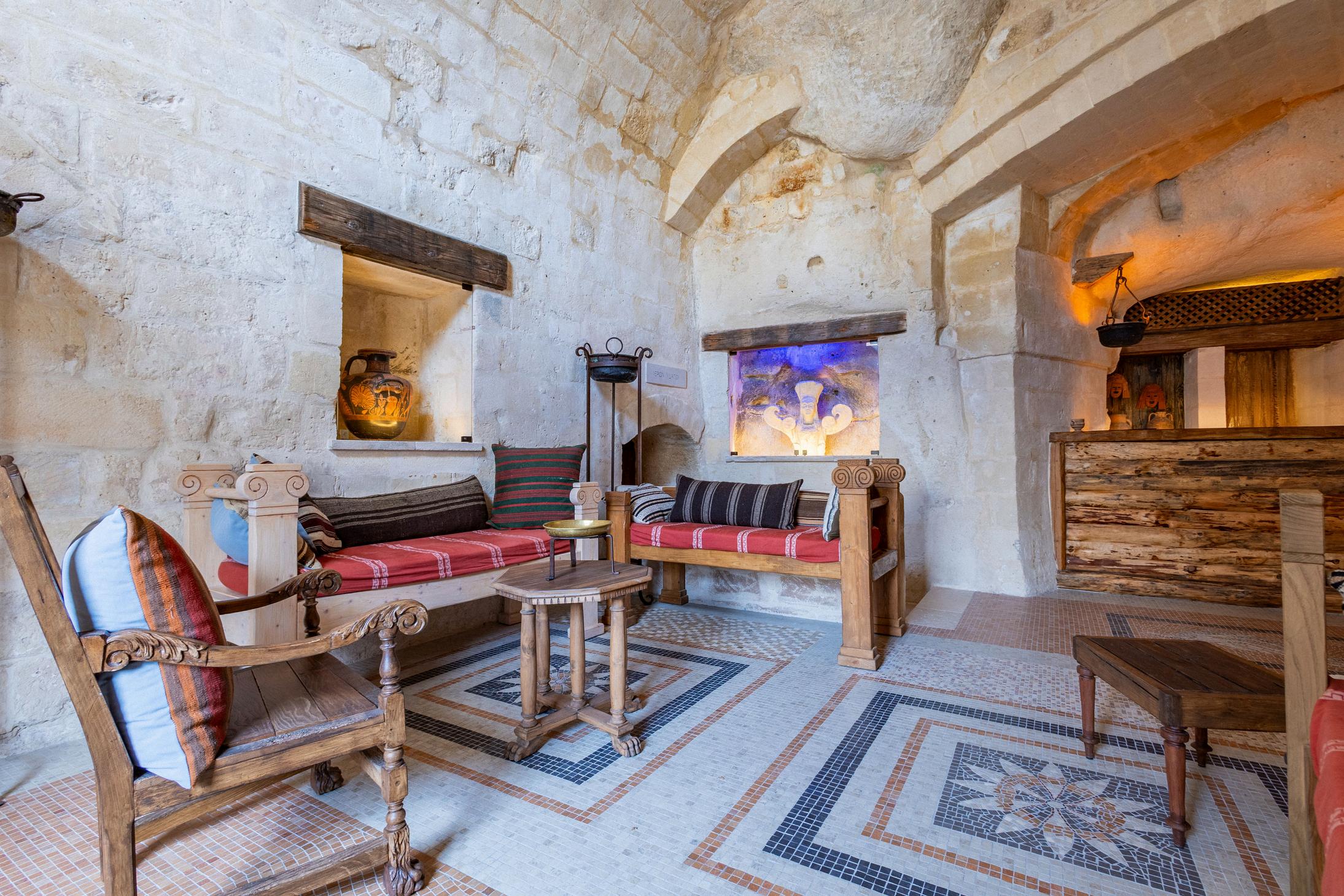 The architectural vision of the MOYΣEION is not about reconstruction but reincarnation. The spaces, entirely contained within the ancient rock dwellings of the Sassi, were restored and expanded with a philosophy of subtraction: removing rather than adding, revealing rather than imposing. Local stone, compacted soil, lime plasters, and pigments drawn from minerals and plants form a tactile and olfactory palette that reconnects the visitor to an archaic material consciousness.