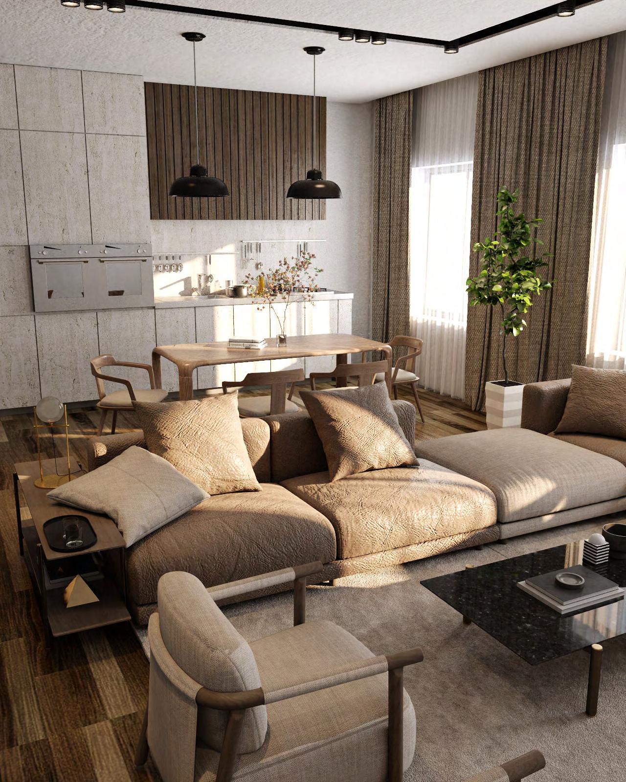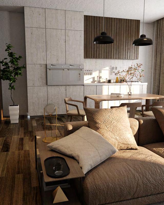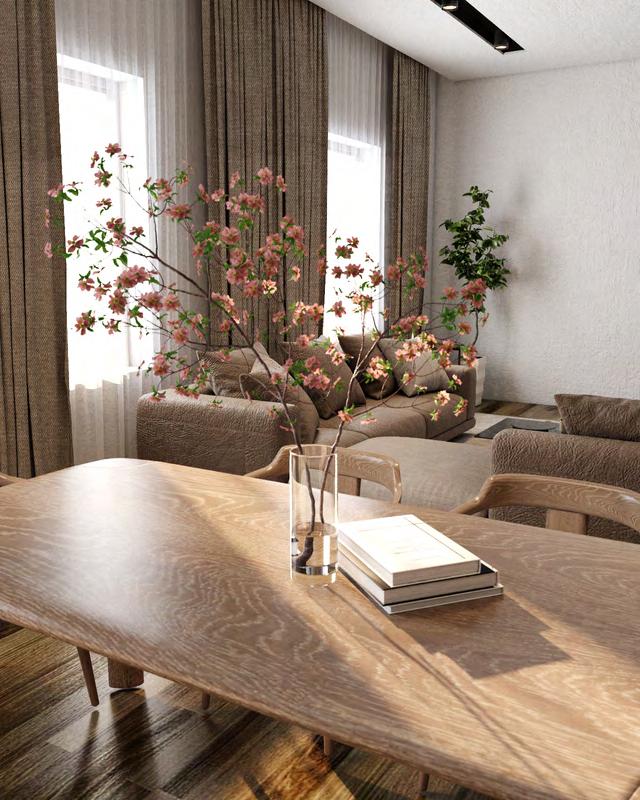 ModernLivingRoom Projecteffortlesslyblendscontemporaryelegancewithfunctionality,featuringsleeklines,aneutralpalette,anda stunningwoodendiningtable.Thespaceisbathedinnaturallight,creatingachicandwelcomingambiancethatseamlesslyintegrates modernaestheticswithtimelesswoodenaccents.