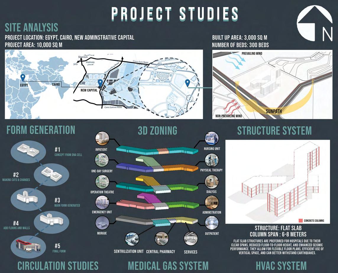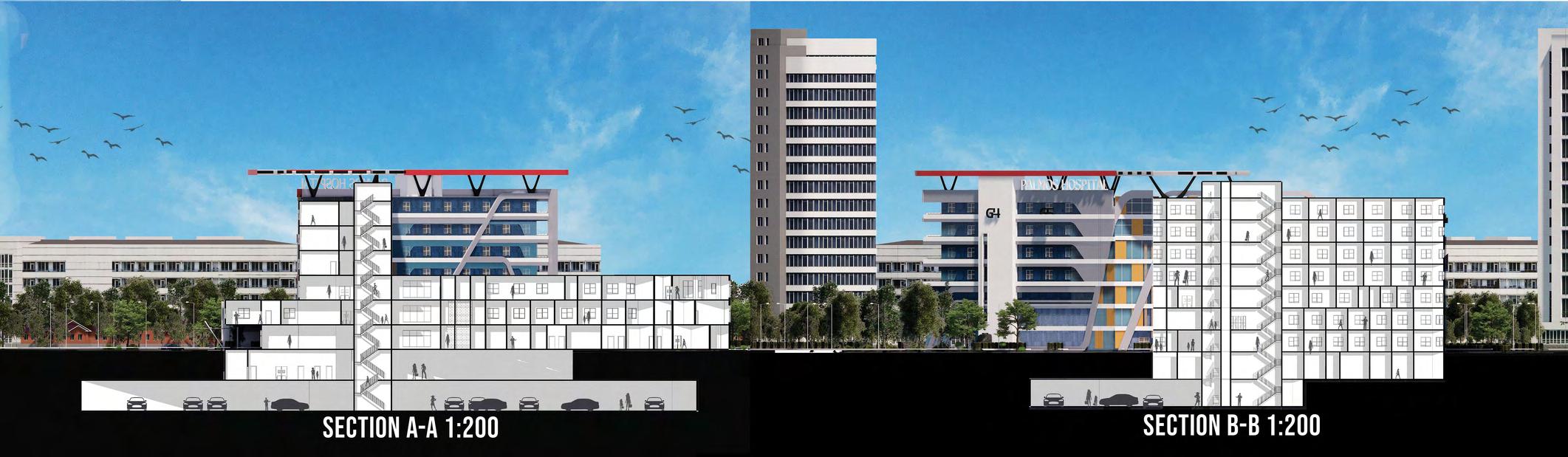 PalmosHospitalinspiredbythepulseoflife,isaninnovativegraduationarchitectureproject.The layout,shapedlikeapulse,adherestohospitaldesignstandards,optimizingfunctionality.The facade,adornedwithpositiveenergycolors,reflectshopeandhealing.Facilitiesprioritizeexcellence, withmeticulousplanningintheairconditioningandmedicalgassystems.Patient-centricdesign fosterscomfortandprivacy,embodyingaholisticapproachtohealthcarearchitecture