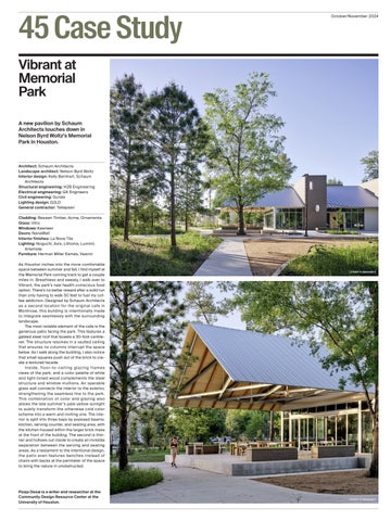 Our landscape section (page 39) extends across all parts of the issue, from a studio visit with TEN × TEN Landscape Architecture (page 22) to a pictorial that offers a glimpse at an architectural installation by DOMM at Bernheim Forest and Arboretum as part of its L+A+N+D (Landscape + Art + Nature + Design) effort, curated by Jenny Zeller (page 20).