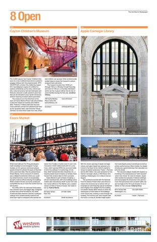 that hosts Apple product workshops as well as artistic performances. Most notably, the design introduces a grand staircase that cascades out onto the street. The new store aligns closely with Apple’s rebranding of its retail spaces as “town squares” rather than stores. To meet its mission, Apple often locates its outposts in historic buildings and encourages the structures to be used for more than just phone and computer sales. Apple Carnegie is the 13th such location to try to deliver on that concept. Sukjong Hong 801 K Street NW Washington, D.C.