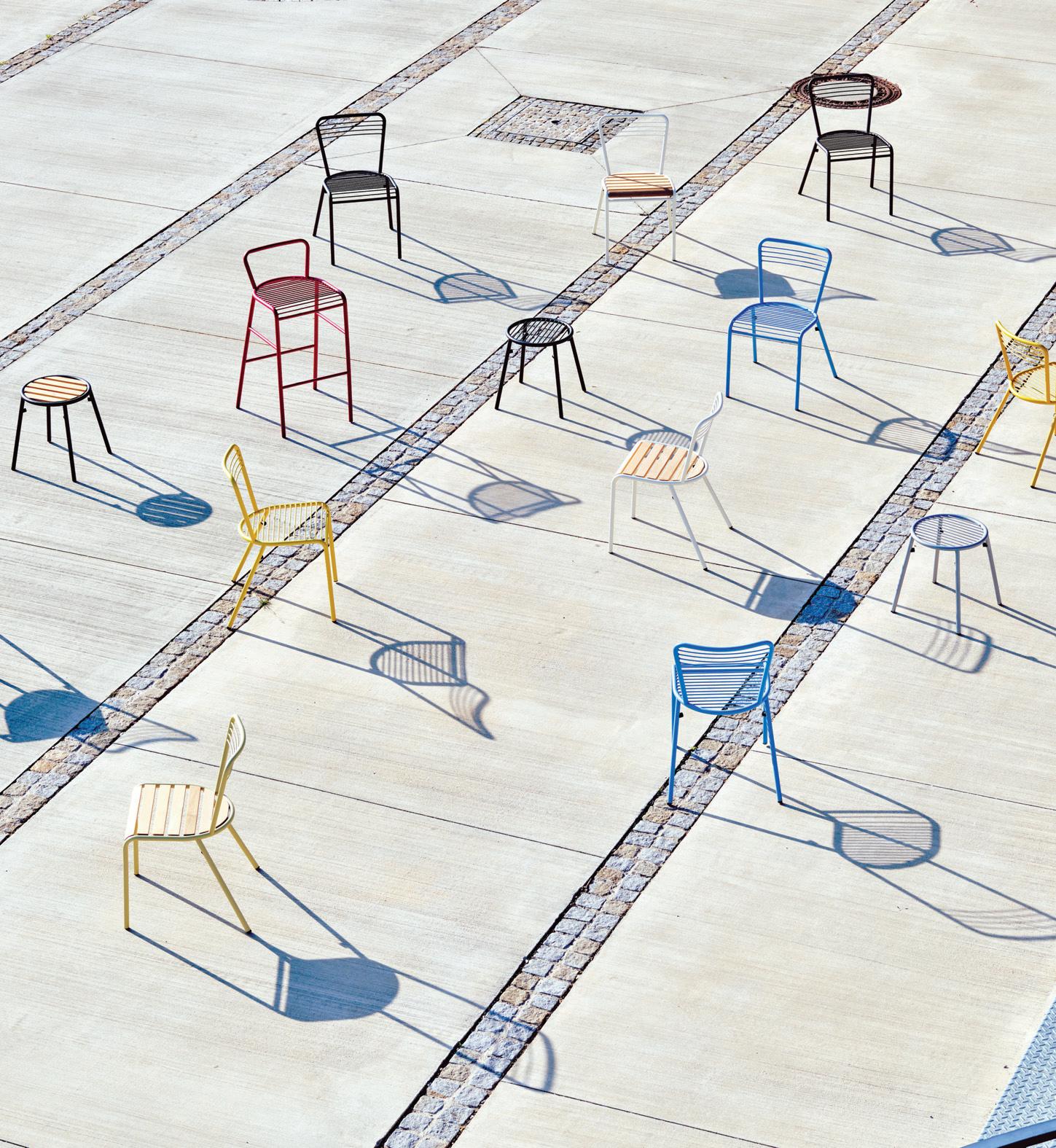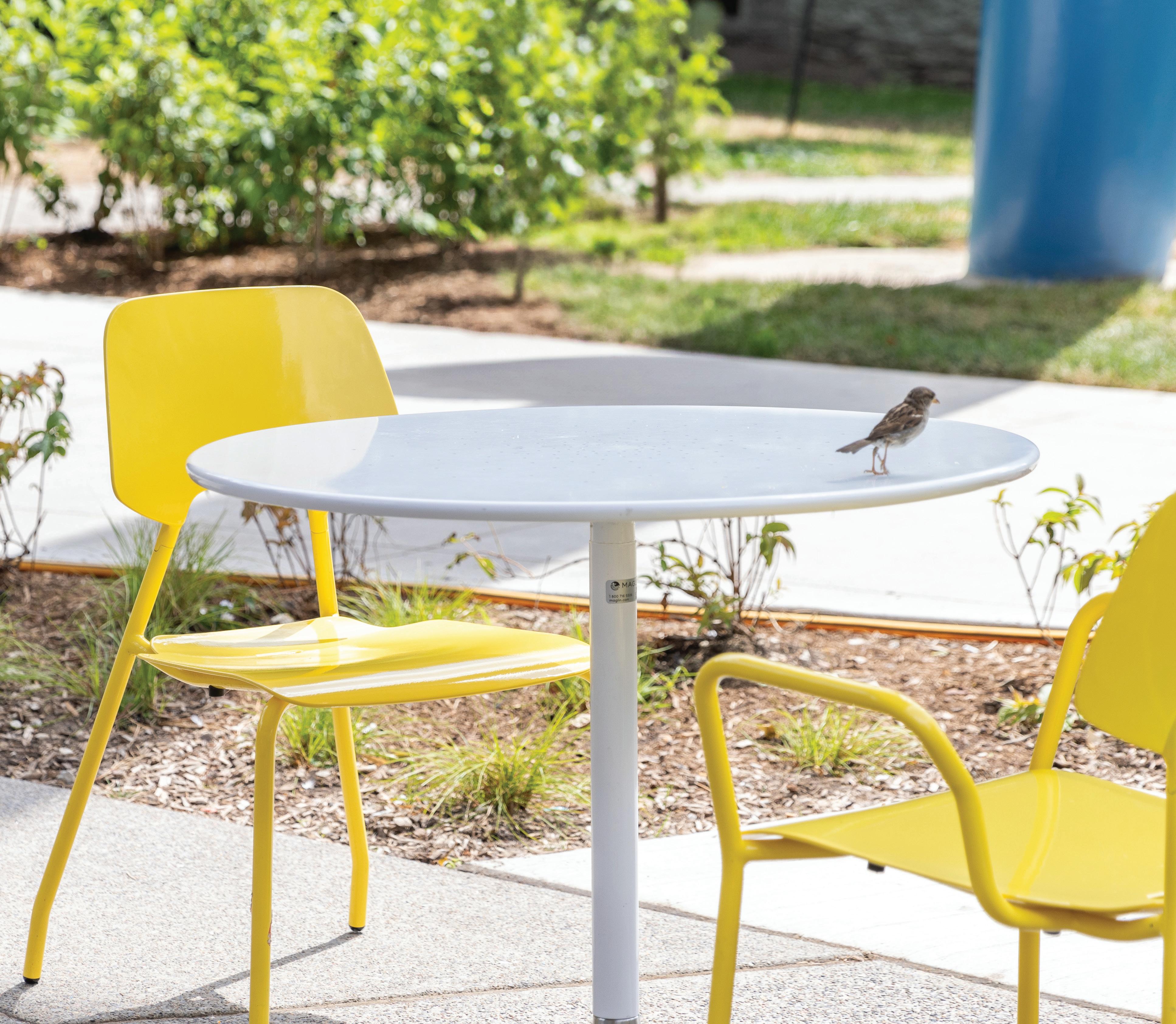 Durable yet elegant, these tables and chairs offer a slim form to elevate public spaces with simple and subtle lines.