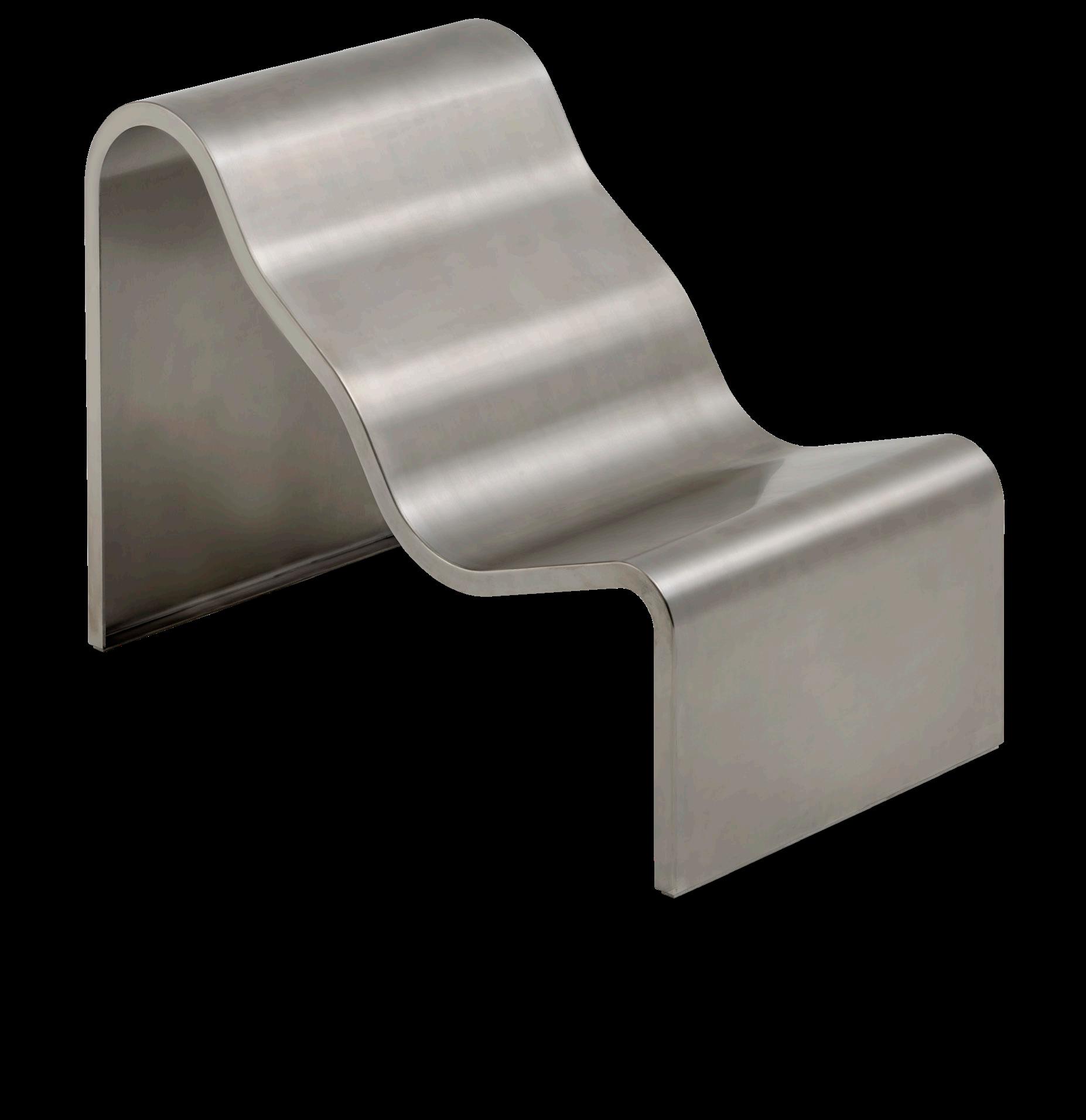 Rippled stainless steel forms a lounge chair, designed by Lise Vester, whose sculptural curves are both stylish and comfortable.