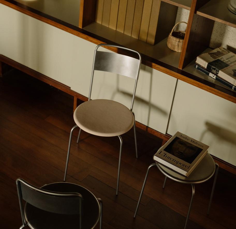 Made in collaboration with architect and designer Troels Grum-Schwensen, this line of lightweight stainless steel chairs and stools feature a minimalism that allows transition from indoors to out.