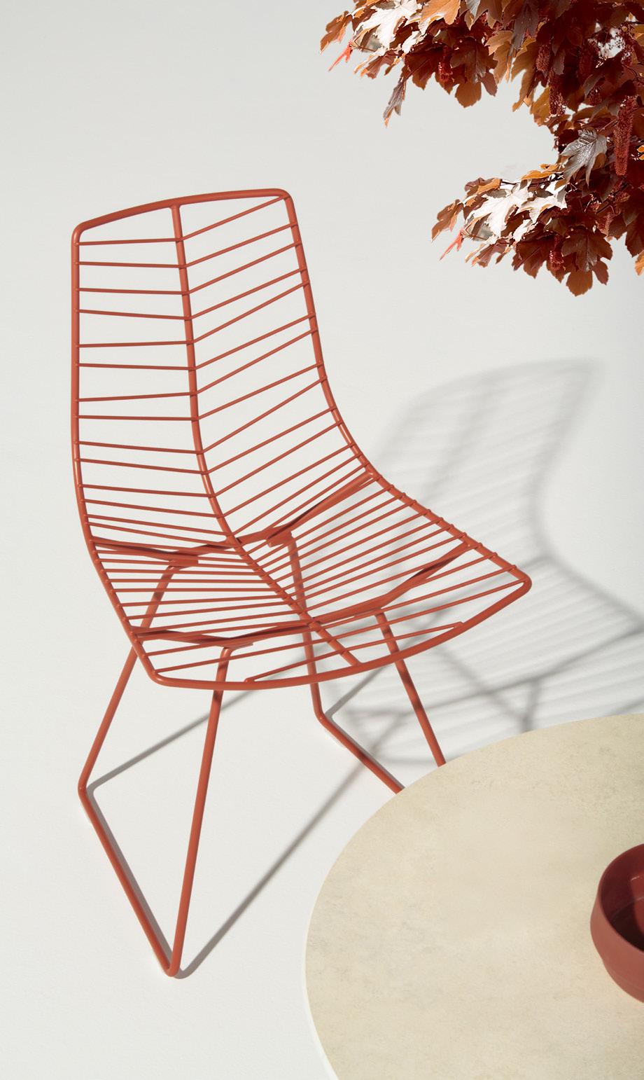 The delicate silhouette of this seating and table collection, designed by Lievore Altherr Molina, mimics the veining of leaves, creating a light, stackable option for both hospitality and residential projects.