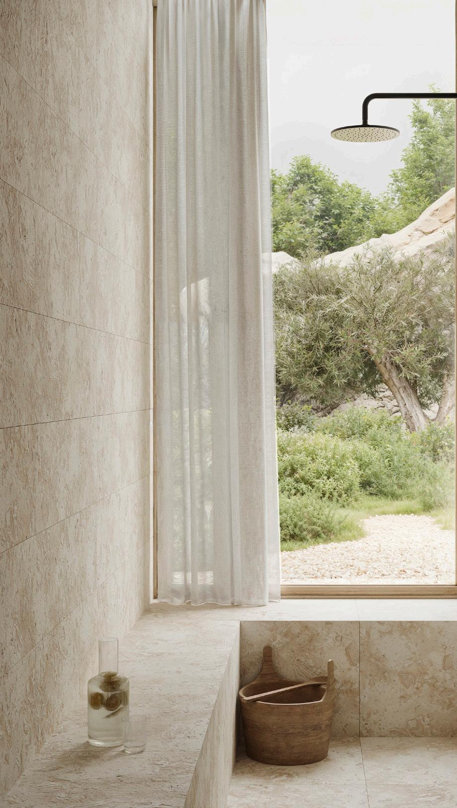 Evoking the island for which it’s named, Salina combines weathered wood and plied stone for a collection that is pared down and soft.