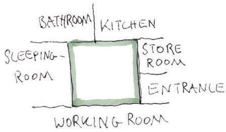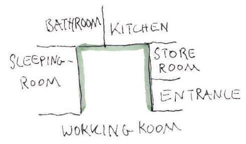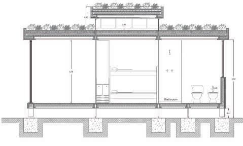 Ubicada en medio del Politécnico de Milán Campus Leonardo en Italia, diseñada para una pareja joven o dos estudiantes universitarios para un periodo corto de tiempo, la residencia cumple con las necesidades para que se pueda utilizar también como un lugar de trabajo; se basa en el método desarrollado por el arquitecto suizo Walter Segal a principios de los años 70s, teniendo como objetivo construir una estructura simple pero eficiente, de bajo costo e incluso podría ser realizada por cualquier persona, El Método Segal consiste en una serie de marcos de madera conectados a dados de concreto en los cimientos para formar una retícula rígida donde las trabes se colocan a cada 60 cm. A pesar de contar con un área menor a 50 m2, la residencia cuenta con todo lo necesario para abastecer las necesidades de dos personas al 100%. Para lograr el objetivo del proyecto, se pensó en una solición distinta a muros divisorios para separar el espacio interno. Se adaptaron cortinas plegables en el interior para poder separar las distintas áreas sin perder espacio habitable. Como resultado, se generó un lugar amplio y lleno de iluminación, creando un ambiente de trabajo agradable que puede albergar hasta 8 personas, asi como un espacio habitable y cómodo. A pesar de contar con amplios ventanales, cuenta con un tragaluz para contar con un espacio interno mejor iluminado y ventilado. La flexibilidad con la que fue diseñada le otorga distintos usos, pudiendo ser un espacio de trabajo creativo y cómodo, o simplemente un estudio.
