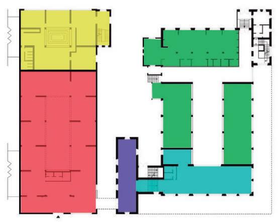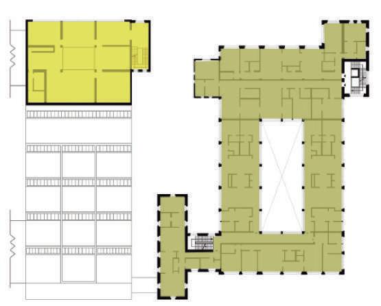 En los dos niveles superiores, se proponen dormitorios (hostal) principalmente para turistas y para los feligreses que acuden cada mes al Ex Covento de San Hipólito ya que la oferta de hoteles en la zona no abastece la demanda generada. El hostal cuenta con habitaciones compartidas de hasta ocho personas (cuatro literas) con servicios compartidos y áreas comunes. Actualmente, el resto del predio alberga un estacionamiento que es poco frecuentado, por lo cual se propone construir en esta área libre un hotel de clase media como complemento del hostal. A través de este diseño, se aprovechan los corredores formados entre los edificios como área libre para proporcionar una circulación agradable a los usuarios y a la gente en general, teniendo acceso libre a las plazas en planta baja y haciendo un espacio útil, sencillo y amigable con todos.