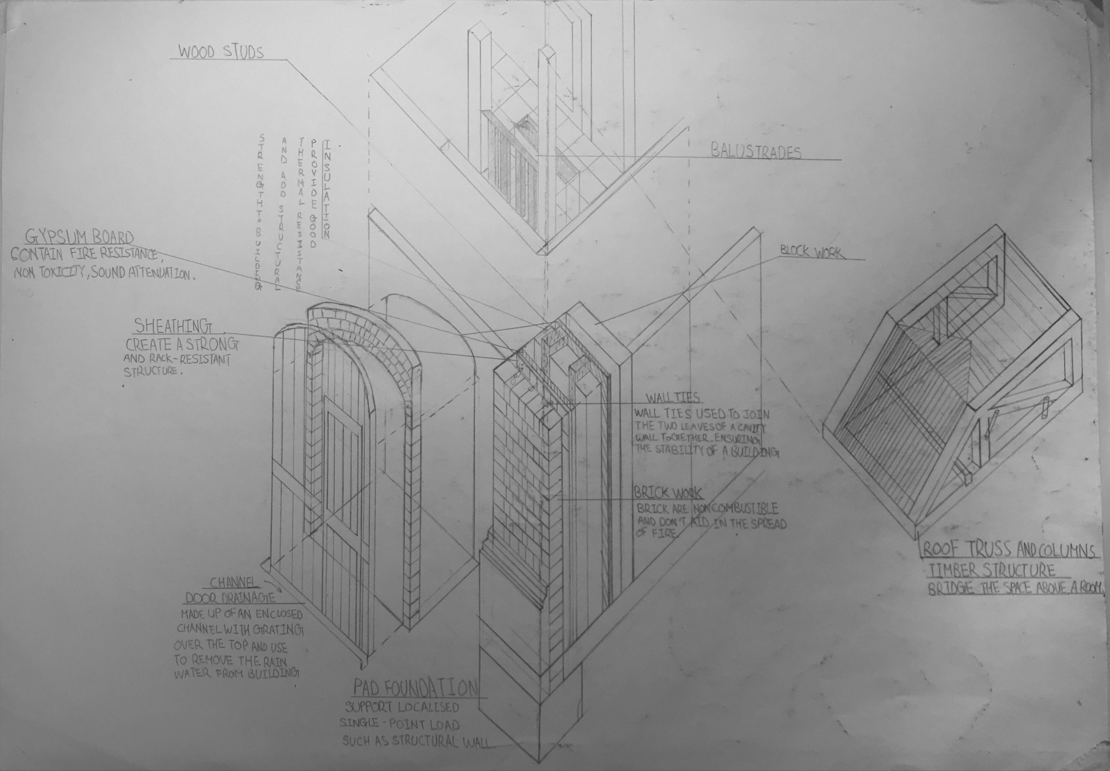 These are drawings of oil street art space and intend to show detailing with axonometric projection.
