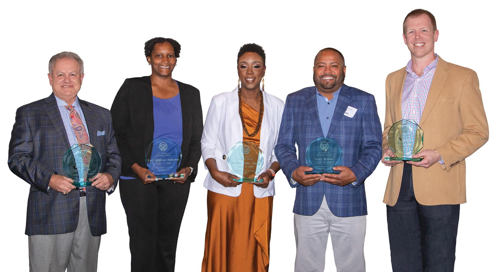 ST. ANDREW’S ALUMNI AND CURRENT FACULTY WITH KEVIN LEWIS ARE Hannah Kitchings King ’78, Scott Albert Johnson ’88, Taylor Morse Davis ’99, and Addison Sharp ’17.