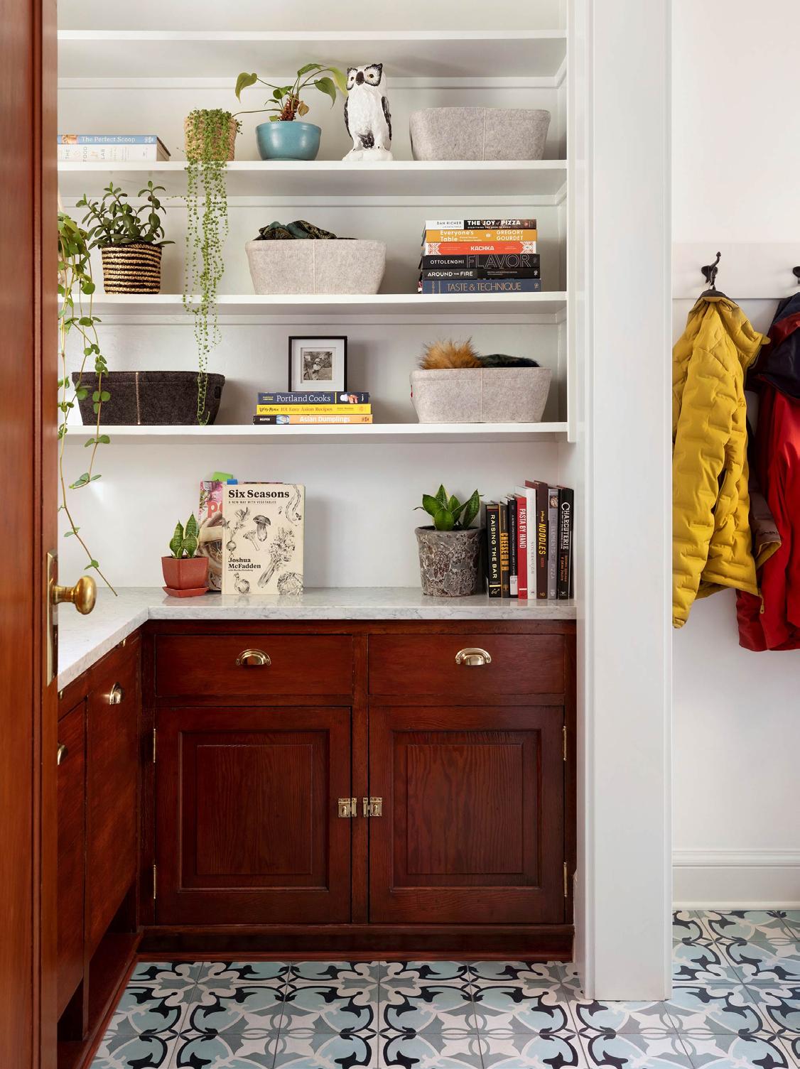 “The oak, the wallpaper, tile and hardware all tied together and just look so beautiful.” Jazmyn loves to work on things that are “a little different and quirky. I love when people come to us with ideas that are just out of the realm.”