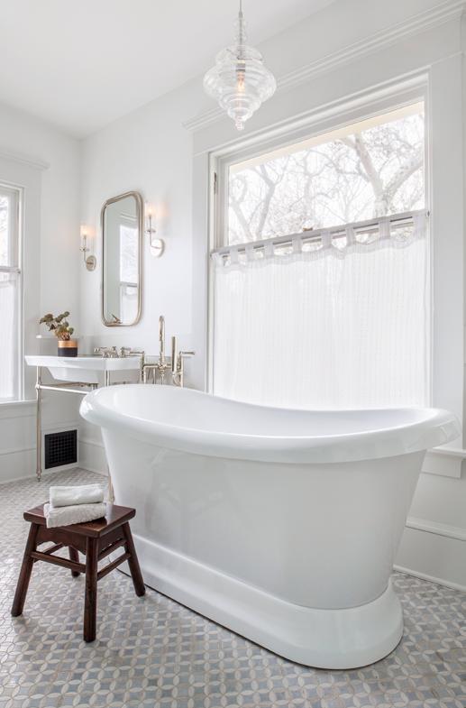 BELOW: Once a bedroom, now the main bath and laundry, we created an oasis for the busy parents.