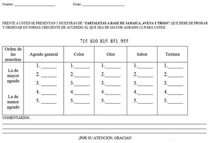 22 EVALUACIÓNSENSORIALDEPROTOTIPOSDELABASE DELATARTALETA