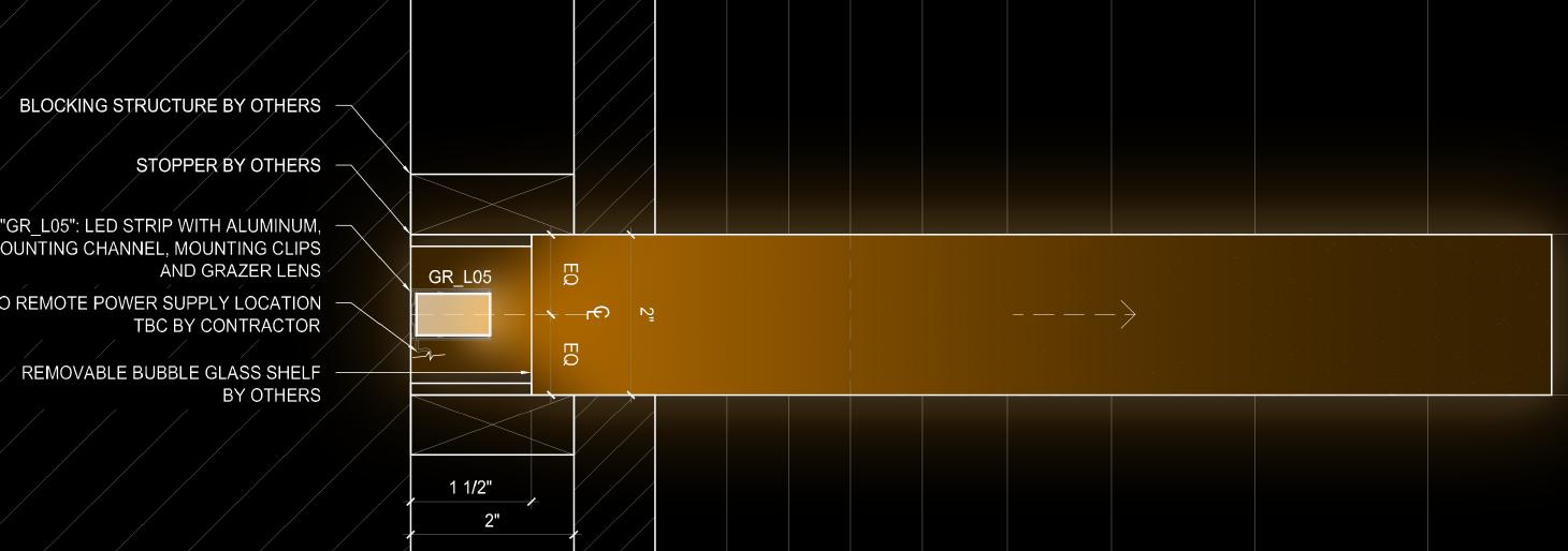 DETALLE DE INTEGRACIÓN DE ILUMINACIÓN EN ESTANTE DE VIDRIO TEXTURIZADO