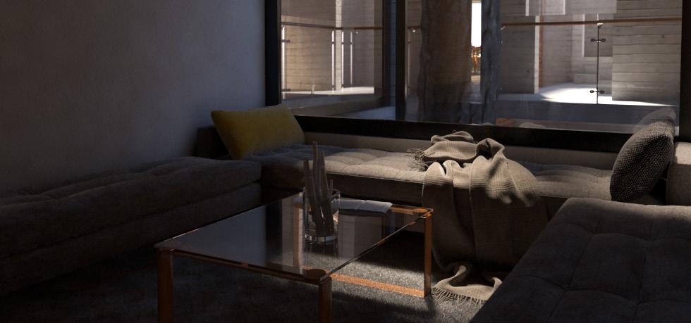 niebla 35 propone que cada pasillo no sea eliminado ni utilizado con fines funcionales ortodoxos, sino promover estos espacios con el fin de que sean conexiones de transmutación entre un espacio y otro, en donde cada vez que cambiemos de habitación, lo hagamos con un espíritu renovado.