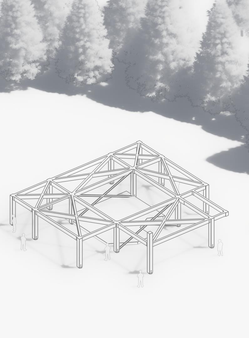 3- Primary Structure: Erecting the timber columns and constructing beams and bracings.