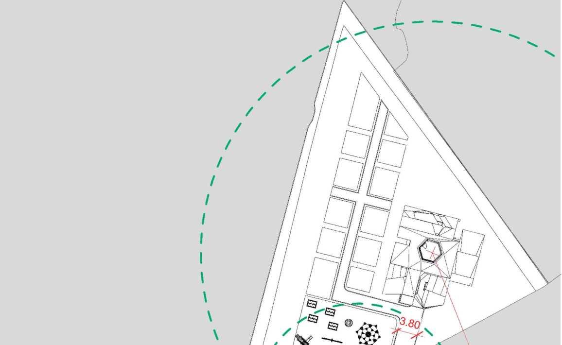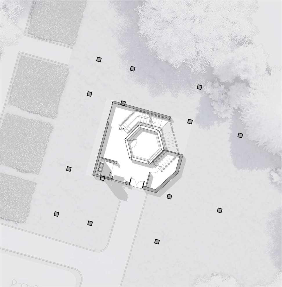 1. .A curvy path inspired from the acorns aggregations was drawn on the constructable area of the site.