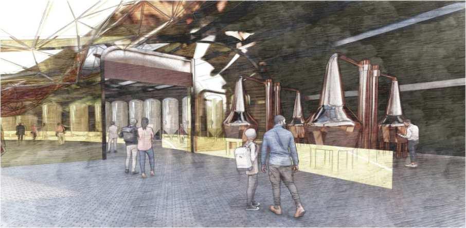 The project aims to design a distillery for The Spirit of Manchester that produces, stores, and showcases both novel and traditional whiskies. The facility must accommodate 200 additional barrels and reflect the client’s passion for innovation in whisky making. It should also provide an immersive visitor experience, allowing them to learn about the whisky-making process and enjoy tasting in a complementary atmosphere.