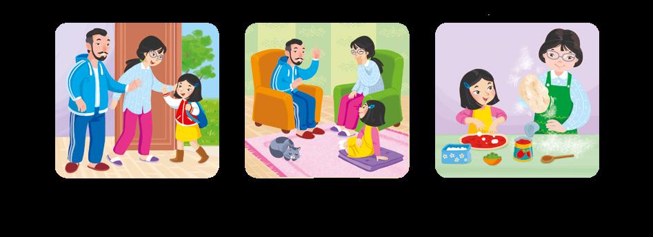 1 Osserva l’illustrazione e scrivi l’azione che compie ciascun personaggio.