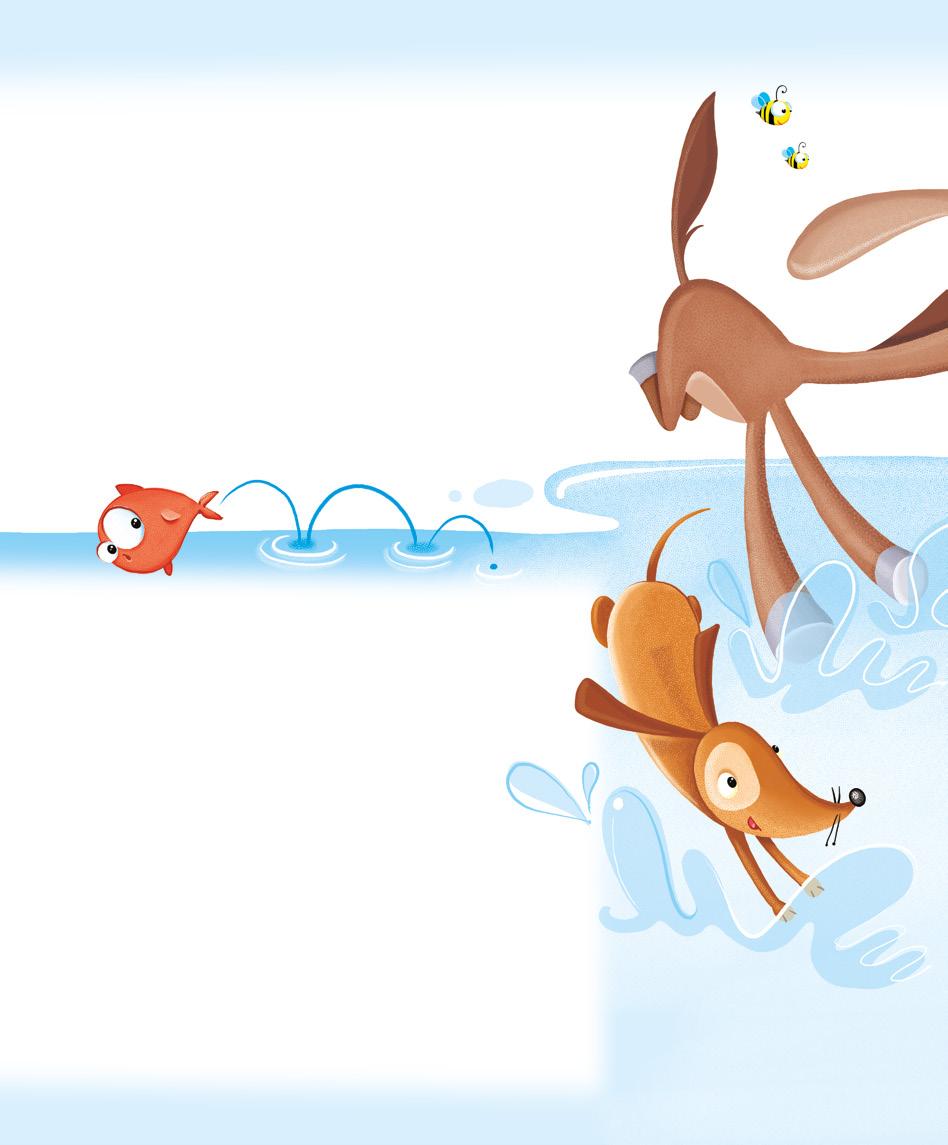 - Certo! Venite! - rispose la rana sorridendo. Così i tre amici trascorsero il pomeriggio a nuotare nel fiume e a ridere insieme.