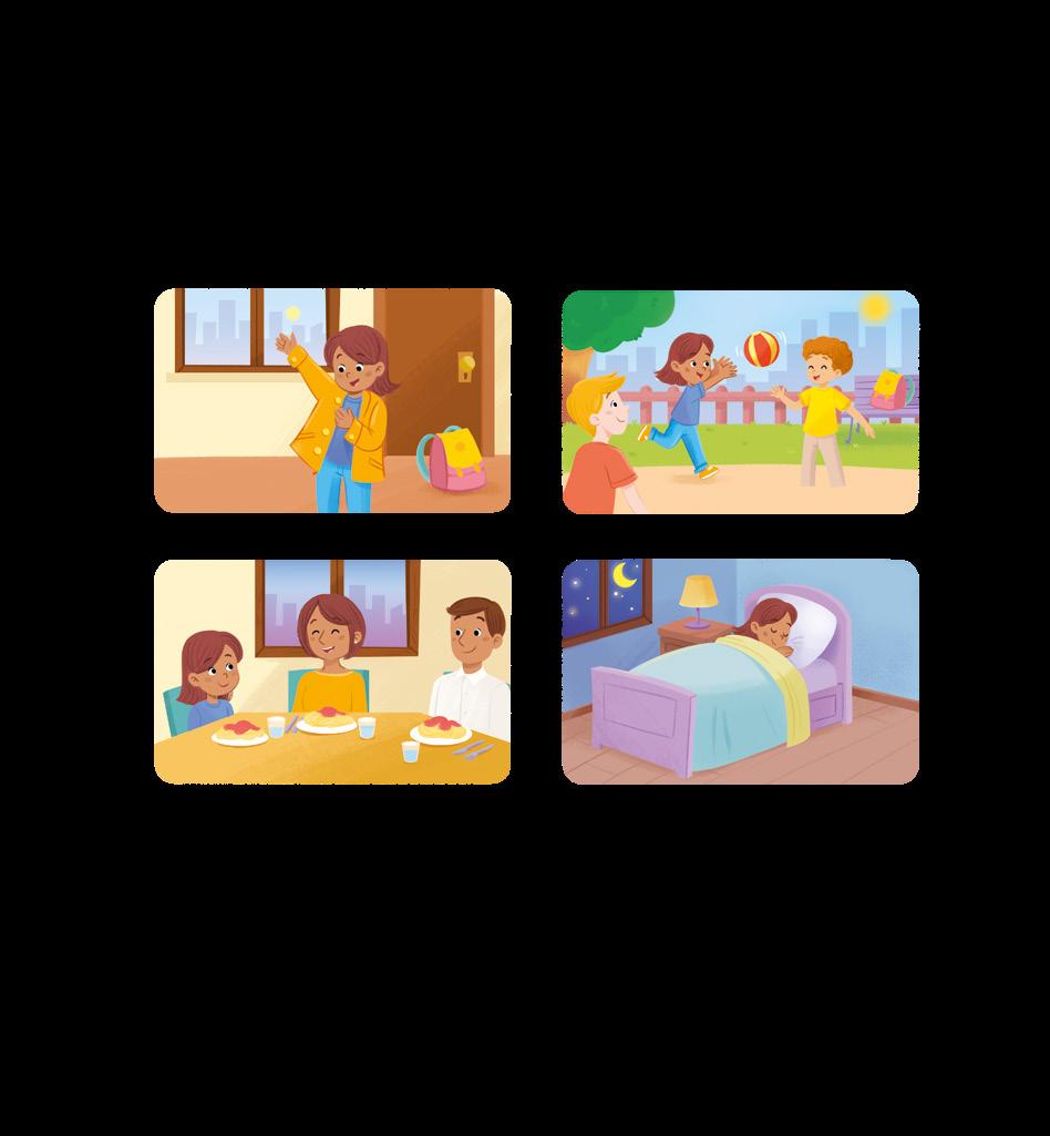A OSSERVA I DISEGNI E COLORA LA CORNICE DI CIÒ CHE AVVIENE PRIMA.