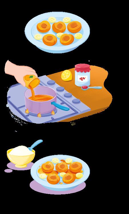 2. Mettere a scaldare il succo delle albicocche, aggiungere la marmellata e far sciogliere a fiamma bassa (fatti aiutare da un adulto), aggiungere infine il succo del limone e versa il tutto sulla frutta.