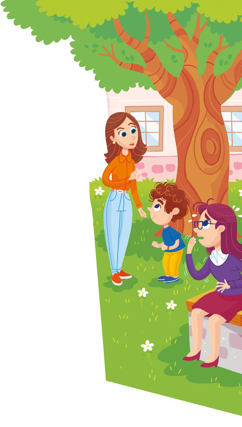 È arrivata la ricreazione. I bambini scendono in giardino a respirare l’aria fresca. Ma all’improvviso… – Aiuto, maestra! Andrea è salito sull’albero!