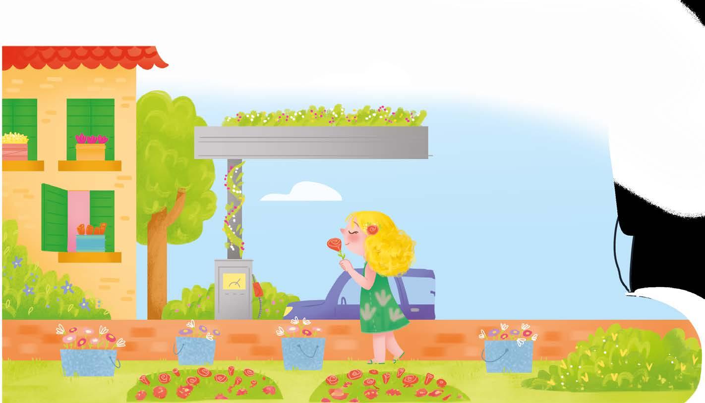 Il papà si fermò in una piazzetta. C’era silenzio perché era mezzogiorno e tutti stavano mangiando.