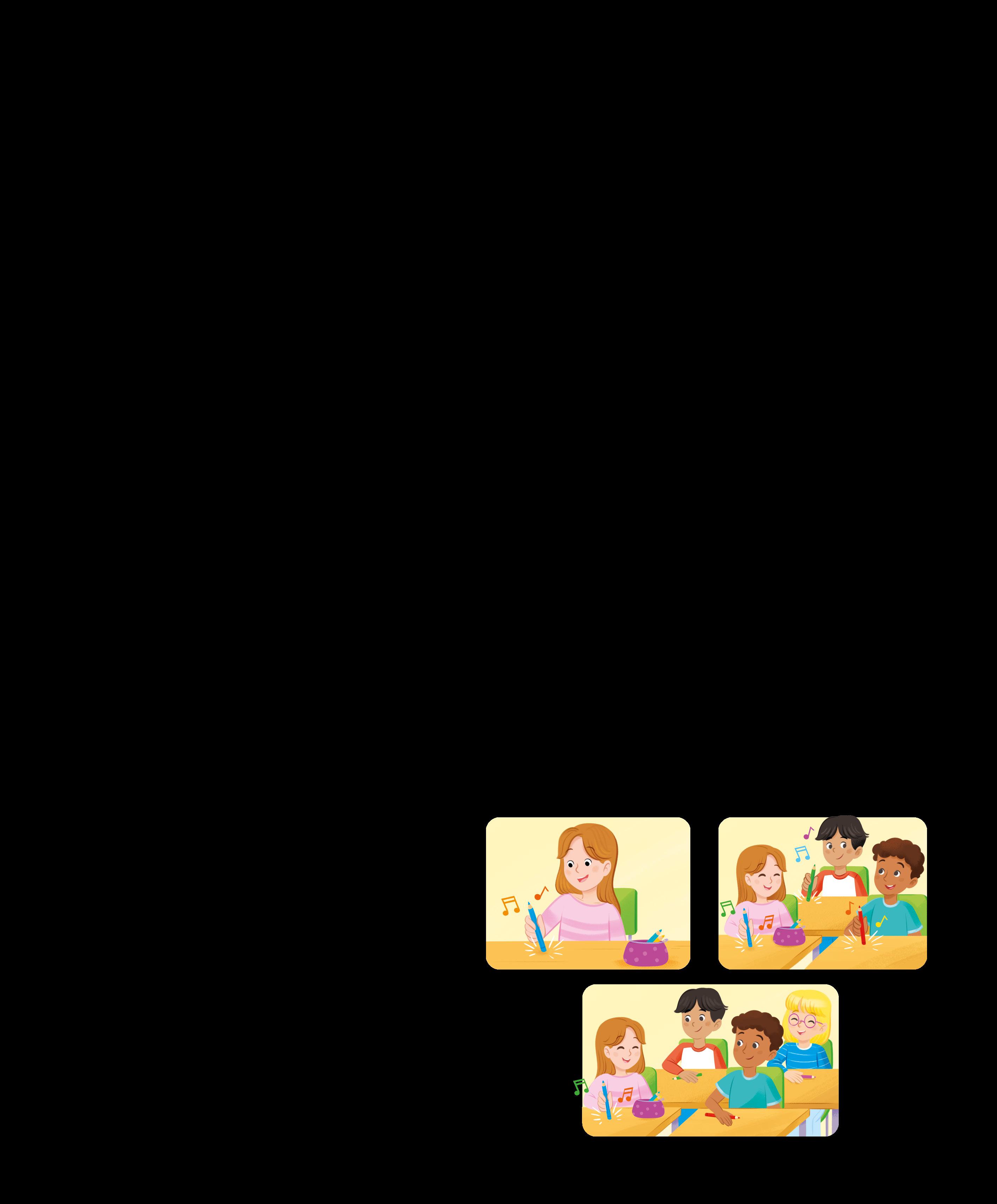ં Ascolta uno o più brani di ciascun genere con l’aiuto della tua famiglia o del tuo insegnante. Quale ti piace di più? Scrivi tre parole che descrivono come ti fa sentire.