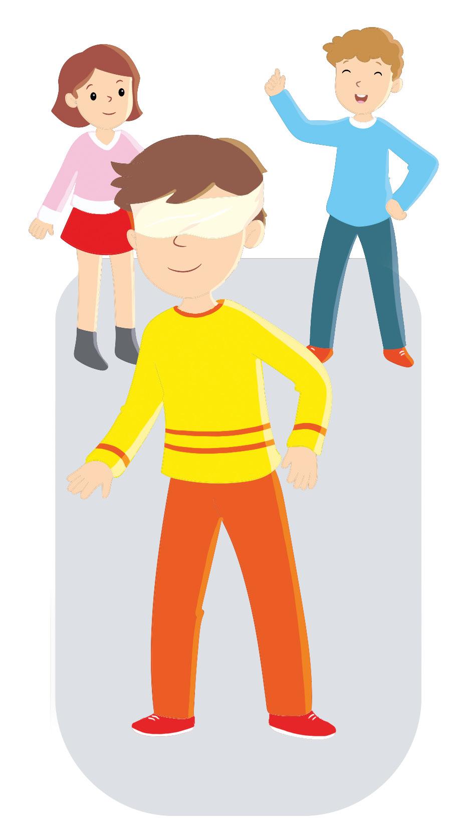 ં Divertiti a riconoscere le voci dei tuoi compagni. Disponetevi in cerchio e, a turno, un tuo compagno si colloca al centro con gli occhi bendati. Al via dell’insegnante, un/a compagno/a inizia a recitare la prima strofa di una filastrocca, seguito da altri come nell’esempio: