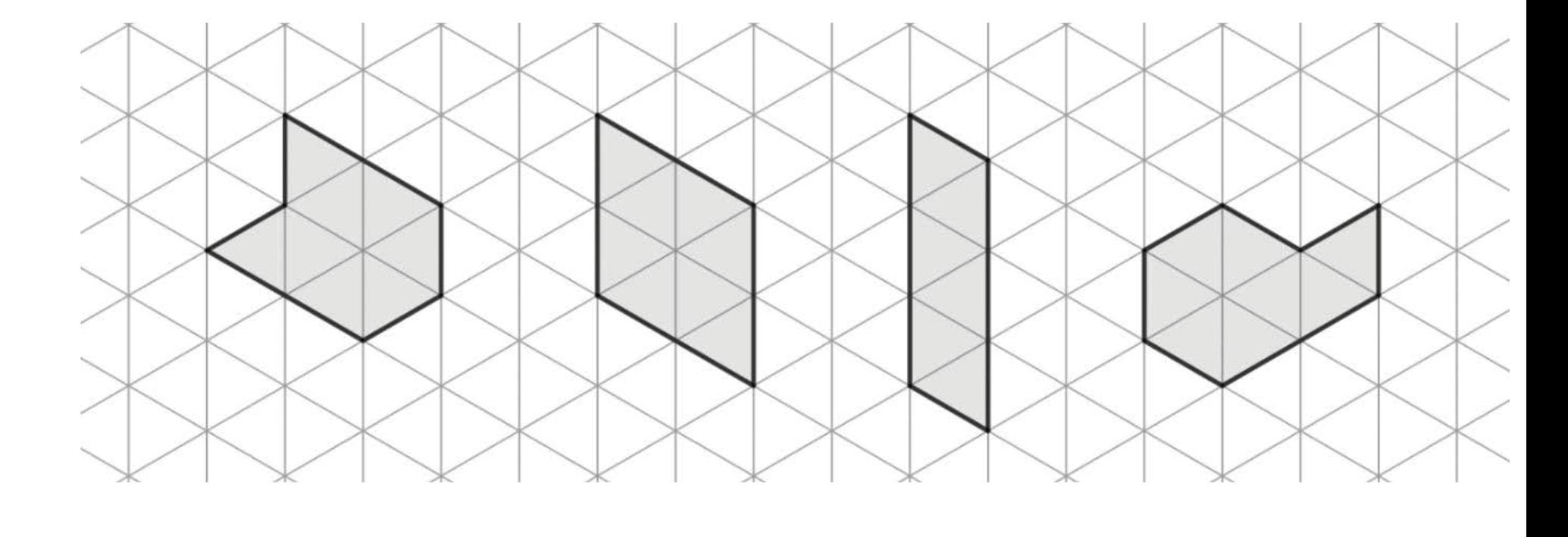 D22 Osserva queste quattro figure disegnate su una griglia formata da triangoli equilateri congruenti.