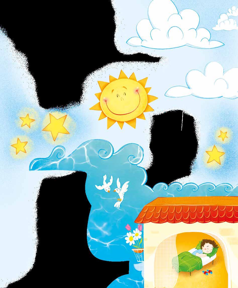 Bacio coi raggi fiori e uccellini, batto ai balconi, sveglio i bambini. Essi vorrebbero sempre dormire: furbetti, fingono di non sentire. E poi mi pregano: – Lasciami qui! Ma i galli cantano: – Chicchirichì!