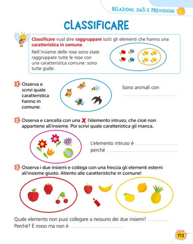 Quale elemento non puoi collegare a nessuno dei due insiemi? .......................... Perché? È rosso ma non è ................................................................. 113