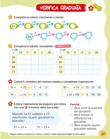 Marcello ha 57 soldatini e 23 macchinine. Quanti giocattoli ha Marcello? 57 + 23 =