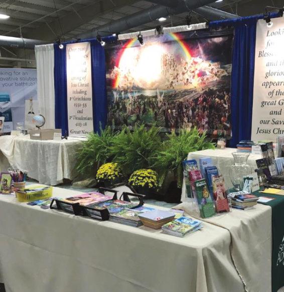 Many fair attendees and vendors have asked about the large picture which forms the backdrop of the booth. The 5 ft.x8ft.beautifulpainting“BlessedHope”isbyartistNathan Greene.It is very eye catching and many have commented that it “takes their breath away.”One gentleman stopped and just stared, saying he had dreamed about the second coming of Jesus. When he saw this painting, it was exactly as in his dream.Many want to have their pictures taken in front of it. Ittrulydrawspeopletothebooth,providingtheopportunity to talk about Jesus to others, which is a gift in itself.Last year, the beautiful booth won the “2023 North Carolina Mountain State Fair Best Non-Commercial Display” award!