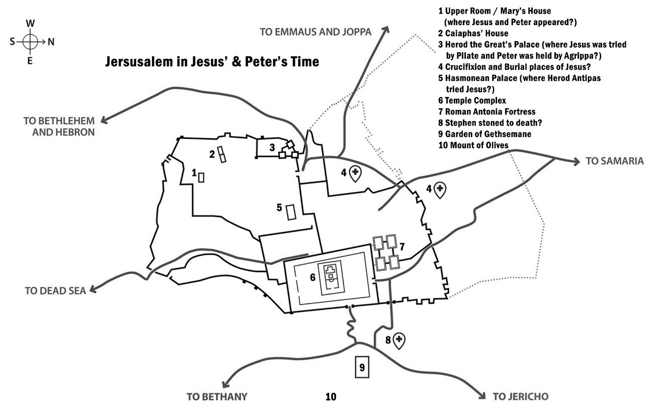 death. And not just His death, but His resurrection – which gave power to the entire movement! Peter was one of many eyewitnesses who had seen Jesus alive again, and walked, talked, even ate with Him. What did it matter if James, or any of them, was executed? Their master, whom they called the true Messiah King, could wake them up from death whenever He chose – as He had awakened the little girl in Capernaum, His friend Lazarus in Bethany, and Himself, walking out of Joseph of Arimathea’s new family tomb right here in Jerusalem!