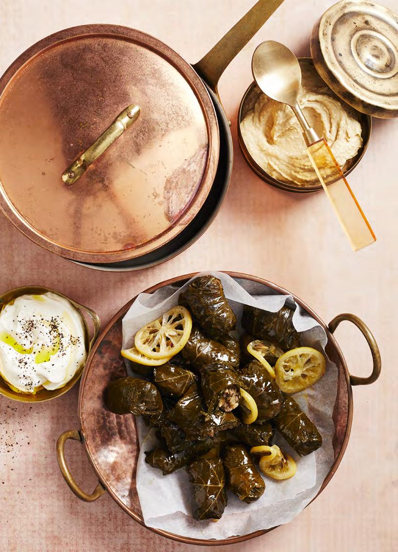 4 Serve vine leaf rolls with hummus and yoghurt.