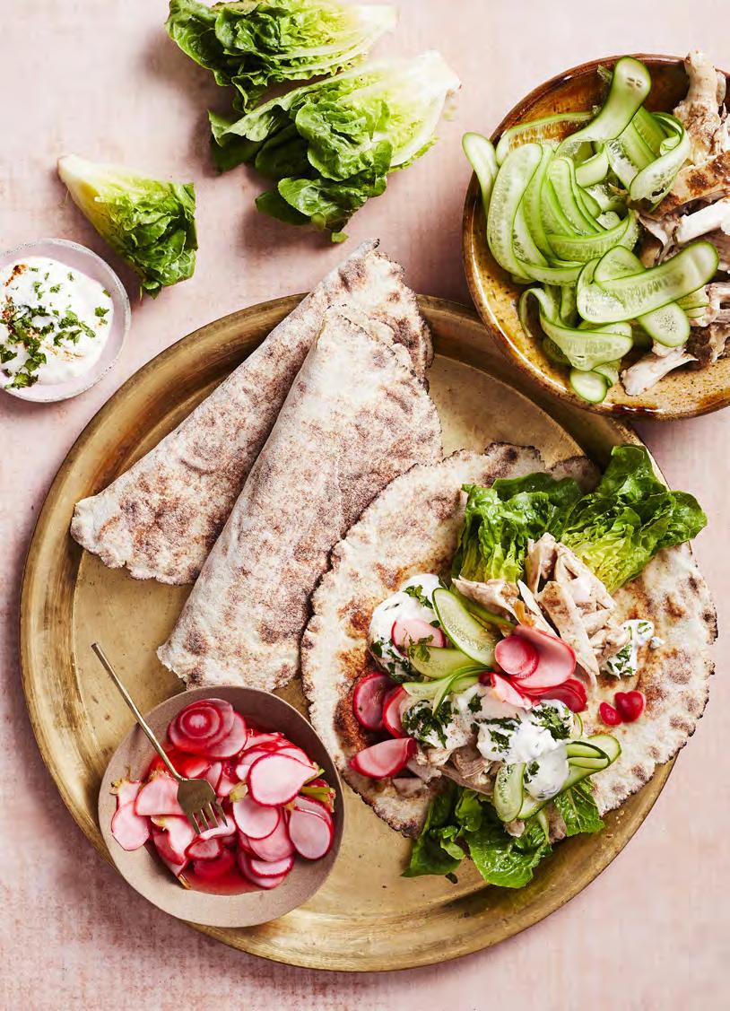 baharat chicken wraps with pickled radish & garlic sauce 73