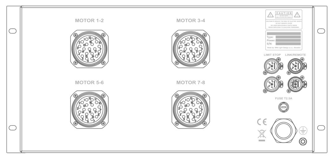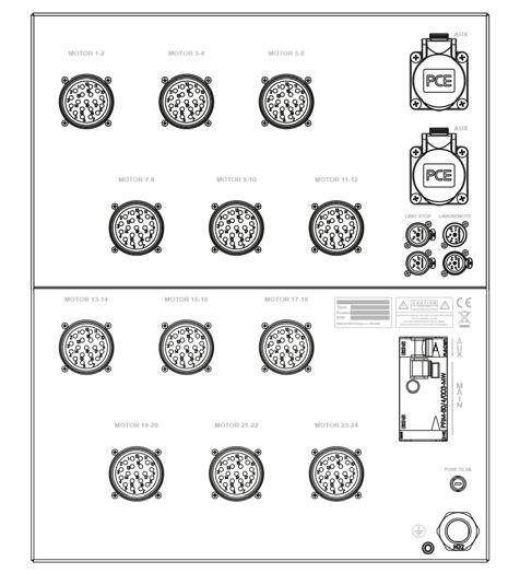 MOTOR PIN DESCRIPTION MOTOR 1 PIN 1 PIN 5 PIN 9 PIN 13 L1 L2 L3 PE MOTOR 2 PIN 2 PIN 6 PIN 10 PIN 14 L1 L2 L3 PE MOTOR 3 PIN 3 PIN 7 PIN 11 PIN 15 L1 L2 L3 PE MOTOR 4 PIN 4 PIN 8 PIN 12 PIN 16 L1 L2 L3 PE BODY PE Earth