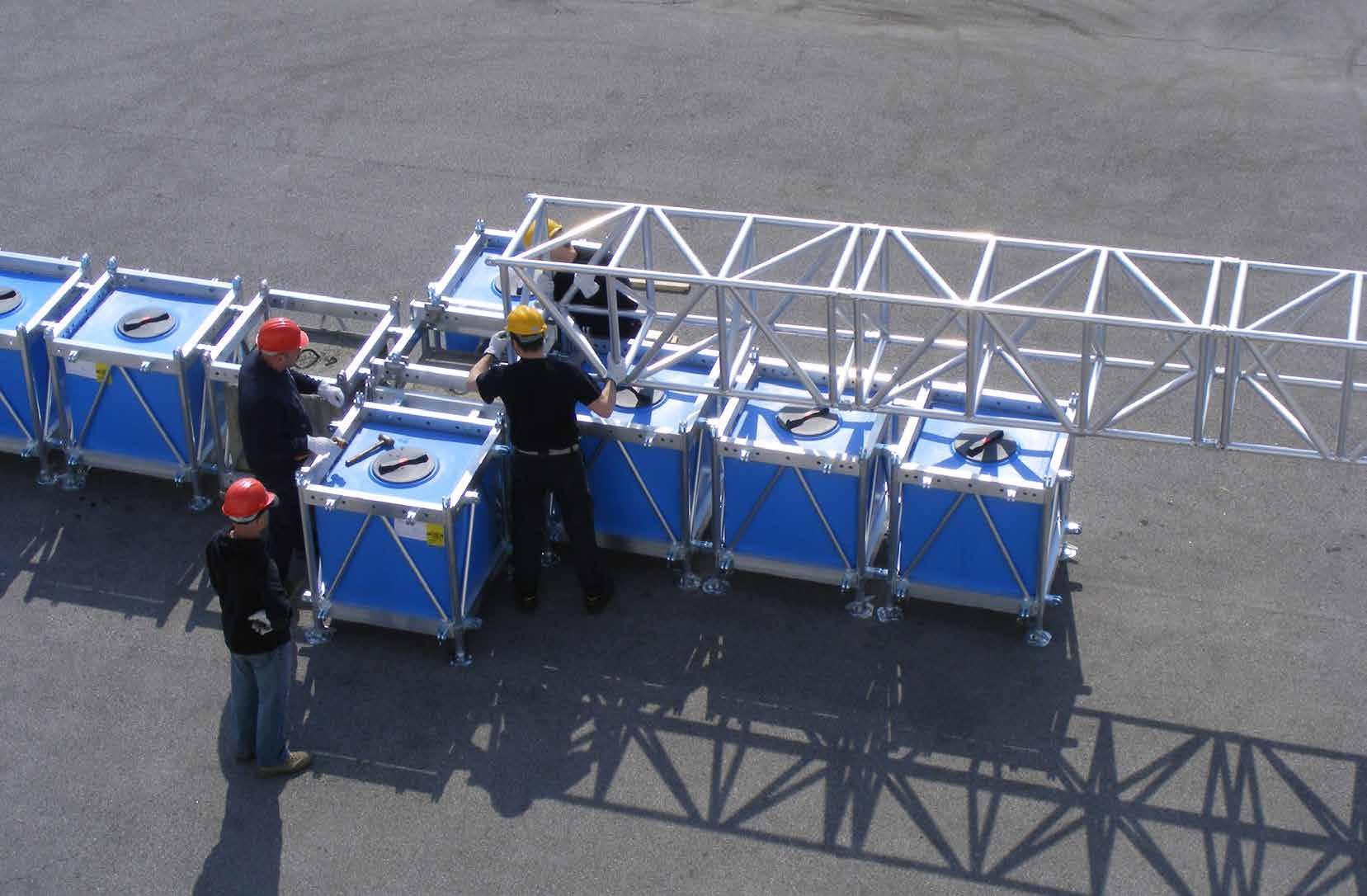 They are solidly built, and easy to assemble and dismantle. Staging often requires static weight to counteract forces and these systems are a very good answer. While the standard ballast for large events is water in tanks, for a small rig tanks can be filled with sand or other materials.