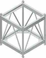 The sleeve block however will take square truss of 29 or 40cm sides, or triangular truss of 29cm sides. In order to connect a triangular 40cm sided truss a substitute central support plate is needed. Every face is furnished with a series of holes for attachment of special steel spigots which allow a variety of diverse truss to be incorporated.