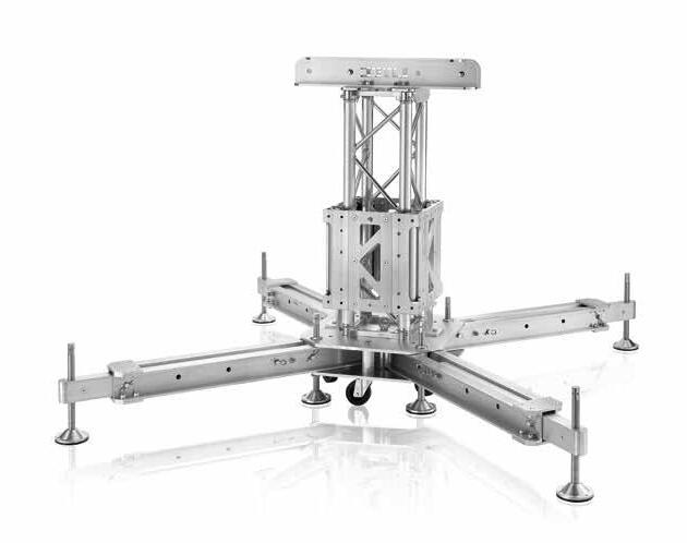 High performance and a quick fork connection system allow this tower to be used as a stand-alone solution (such as a light tower, delay tower, or follow spot tower). Alternatively, its ground base and link equipment can be used to create combinations for building large ground supports.