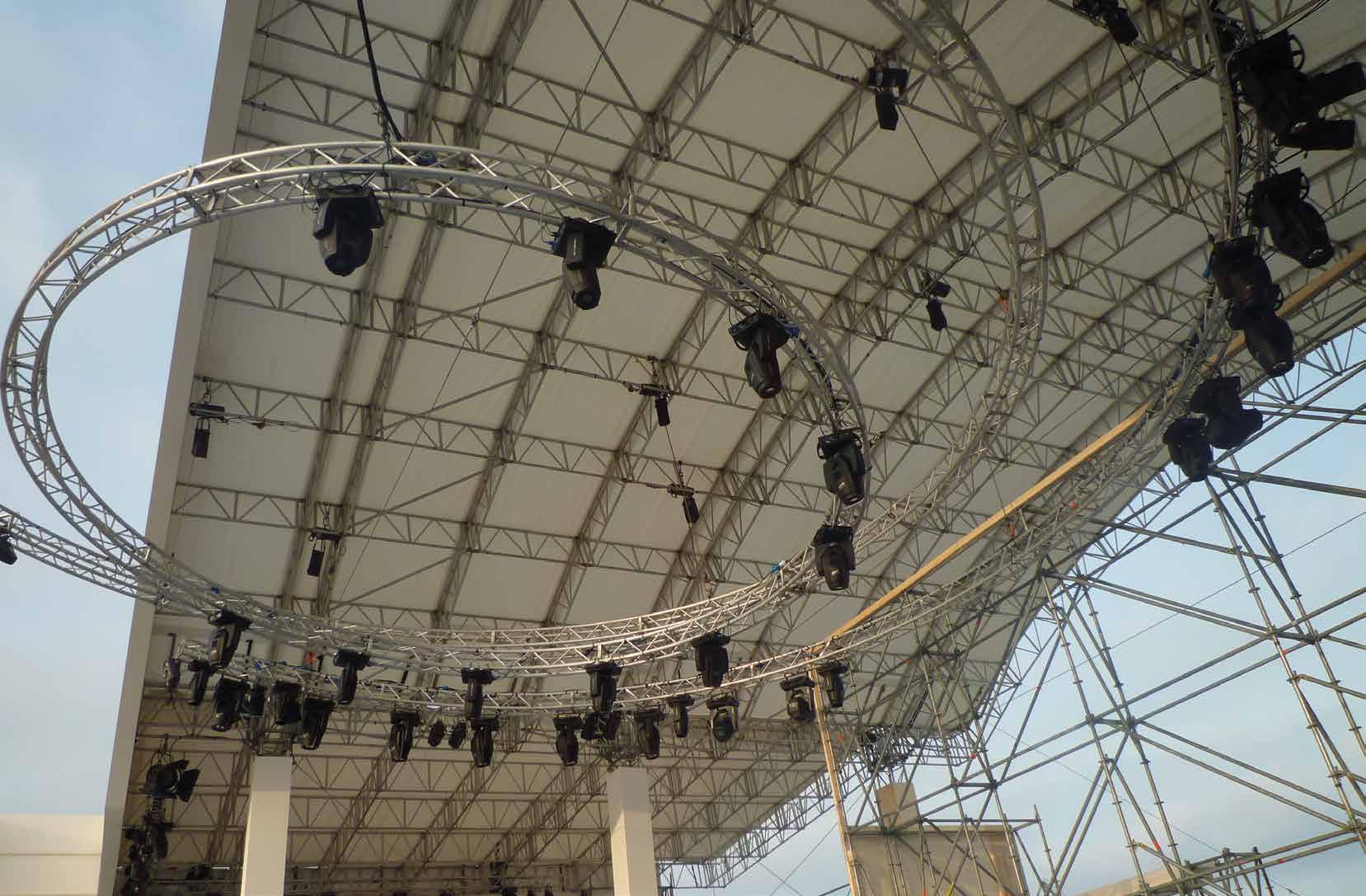 Circles and curved trusses are also made with High Load trusses, load bearing trusses with universal fork connections for high-end solutions and excellent performances. The circles are strong and sturdy, and there is no maximum diameter limit.