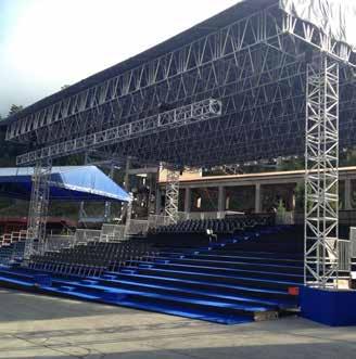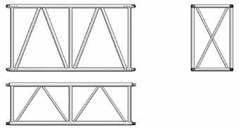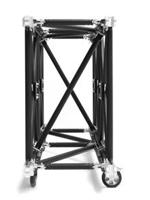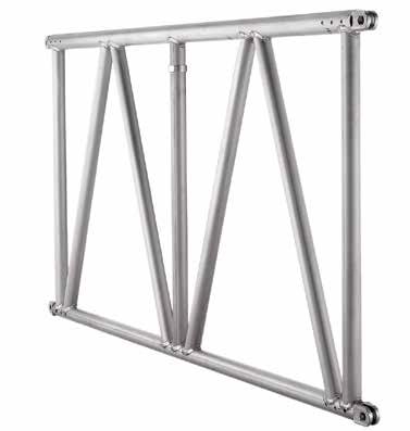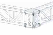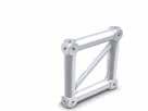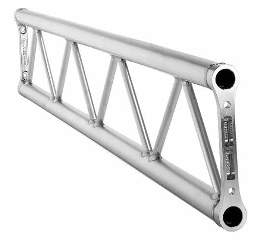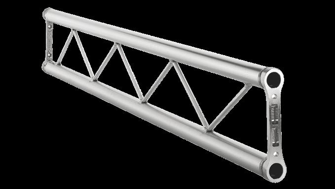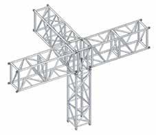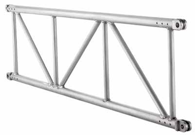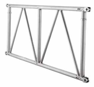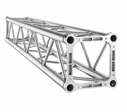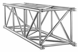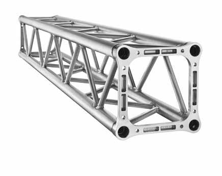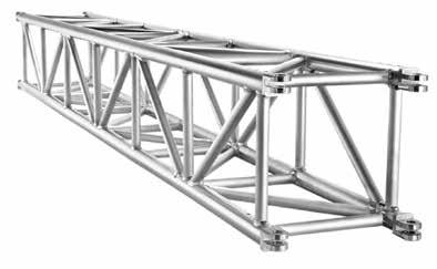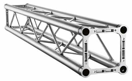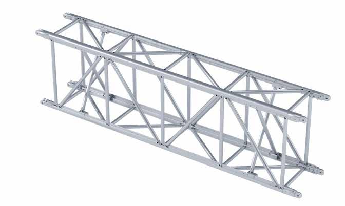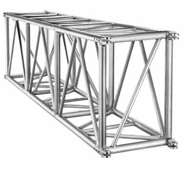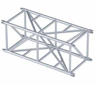 It is the lightest professional structure, yet it is able to guarantee a reasonable loading capacity and span. The internal 14 mm diameter diagonal components are flush which decreases the aesthetic impact of this truss, which may therefore also be used in small areas.