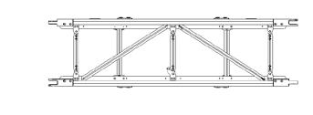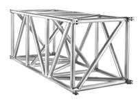 Rectangular section High Load aluminium truss with 76 x 52 cm long sides. It is diagonalized on all faces and is provided with steel fork connections. It ensures high load capacity on medium-long spans thanks to the design of its main components.