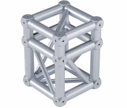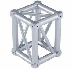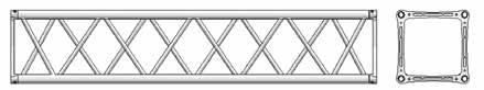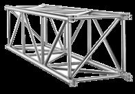 Square section aluminium truss twistresistant version with 29 cm long sides. It substitutes the model QX40S, from which it keeps the excellent size, weight, cost and performance characteristics. It is made of 6082 alloy extruded components, with high load-bearing and twisting strength.